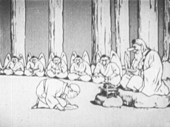 鬼のかわりに、大天狗と多くのカラス天狗が登場する。夜間シーンはシルエットを用いて表現した。