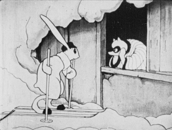 - 雪の山奥からウサ公二匹が、タヌ公を誘ってスキーに出かける。タヌ公は初めてなので、 あぶなっかしいが、すぐ慣れて珍芸続出の競争をするがタヌ公が勝つ。